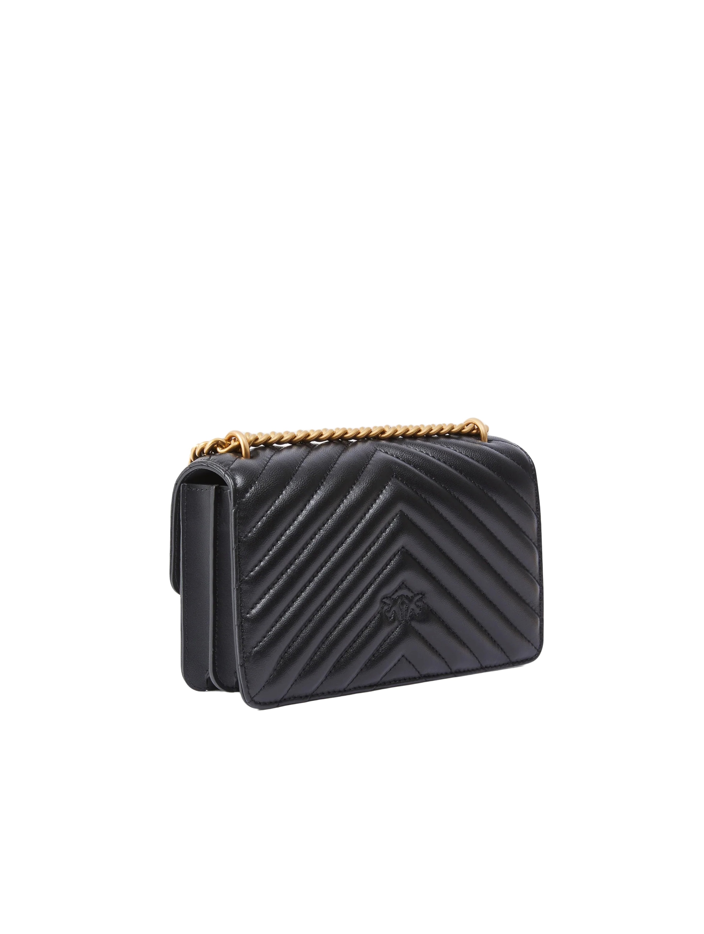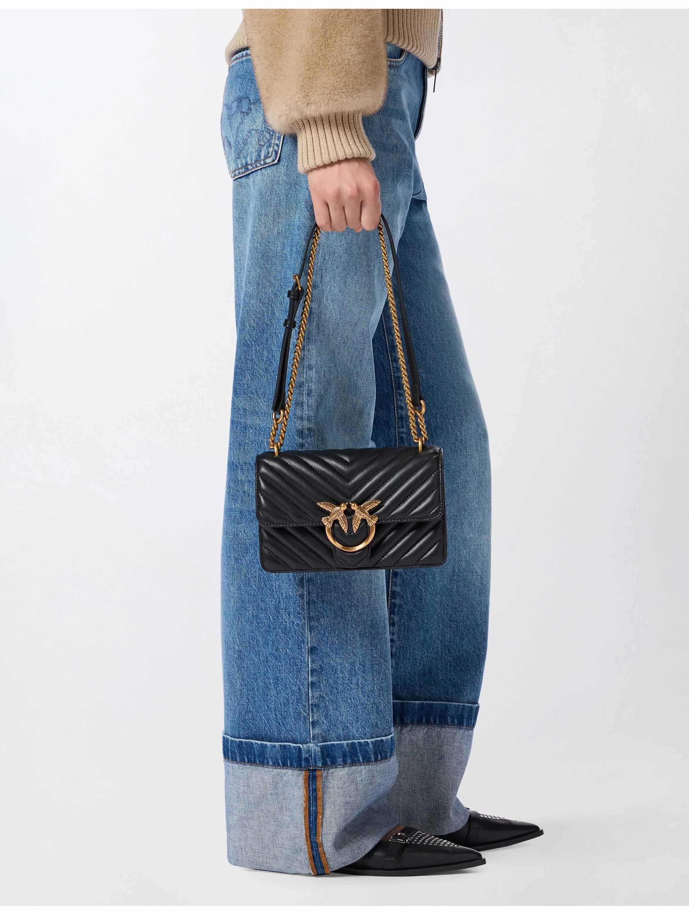 Borsa a tracolla realizzata in morbida nappa, dal design trapuntato con motivo chevron, con interno foderato, tramezza chiusa con zip e tasca a parete in pelle, con tracolla in catena rotonda con pratico spallaccio in pelle regolabile e completata dall'iconica fibbia in metallo Love Birds Diamond Cut in metallo. Per look trendy e chic. PINKO