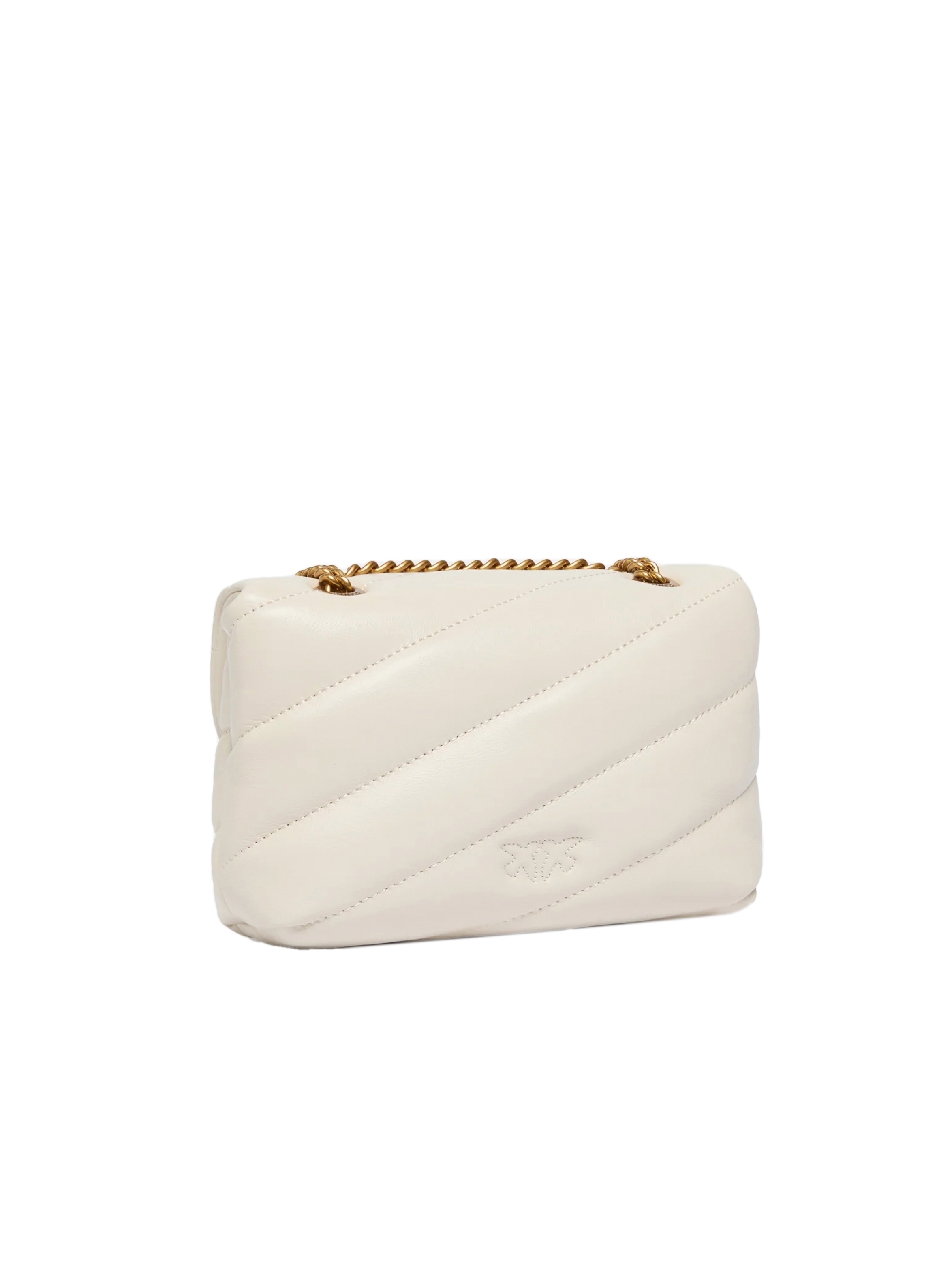 Borsa a tracolla realizzata in morbida nappa, con maxi trapuntatura obliqua, con interno foderato, tasca a parete chiusa con zip, tracolla in catena con pratico spallaccio e completata da una chiusura con patta impreziosita dall'iconica fibbia in metallo Love Birds Diamond Cut in metallo. Per look fashion e chic. PINKO