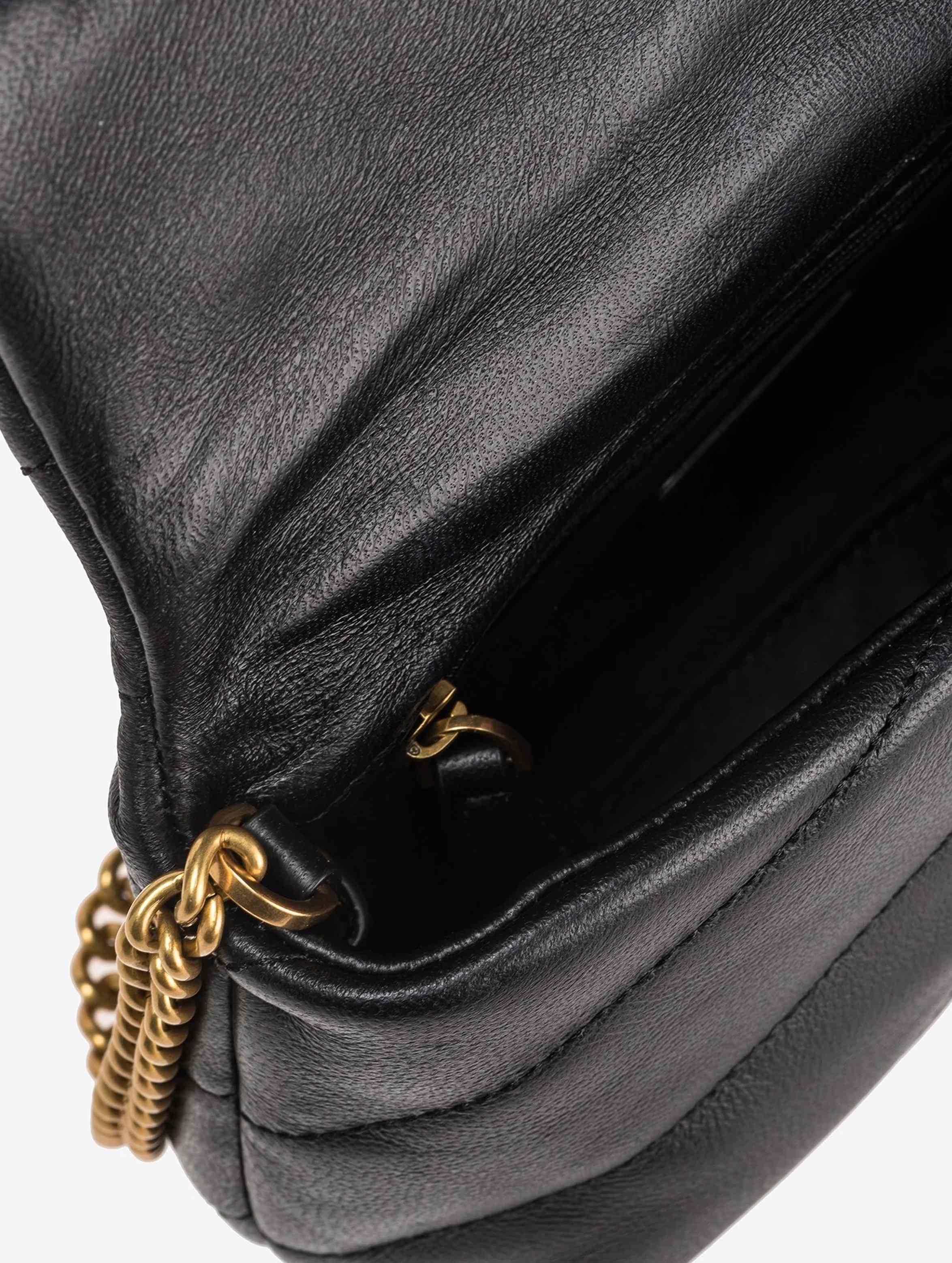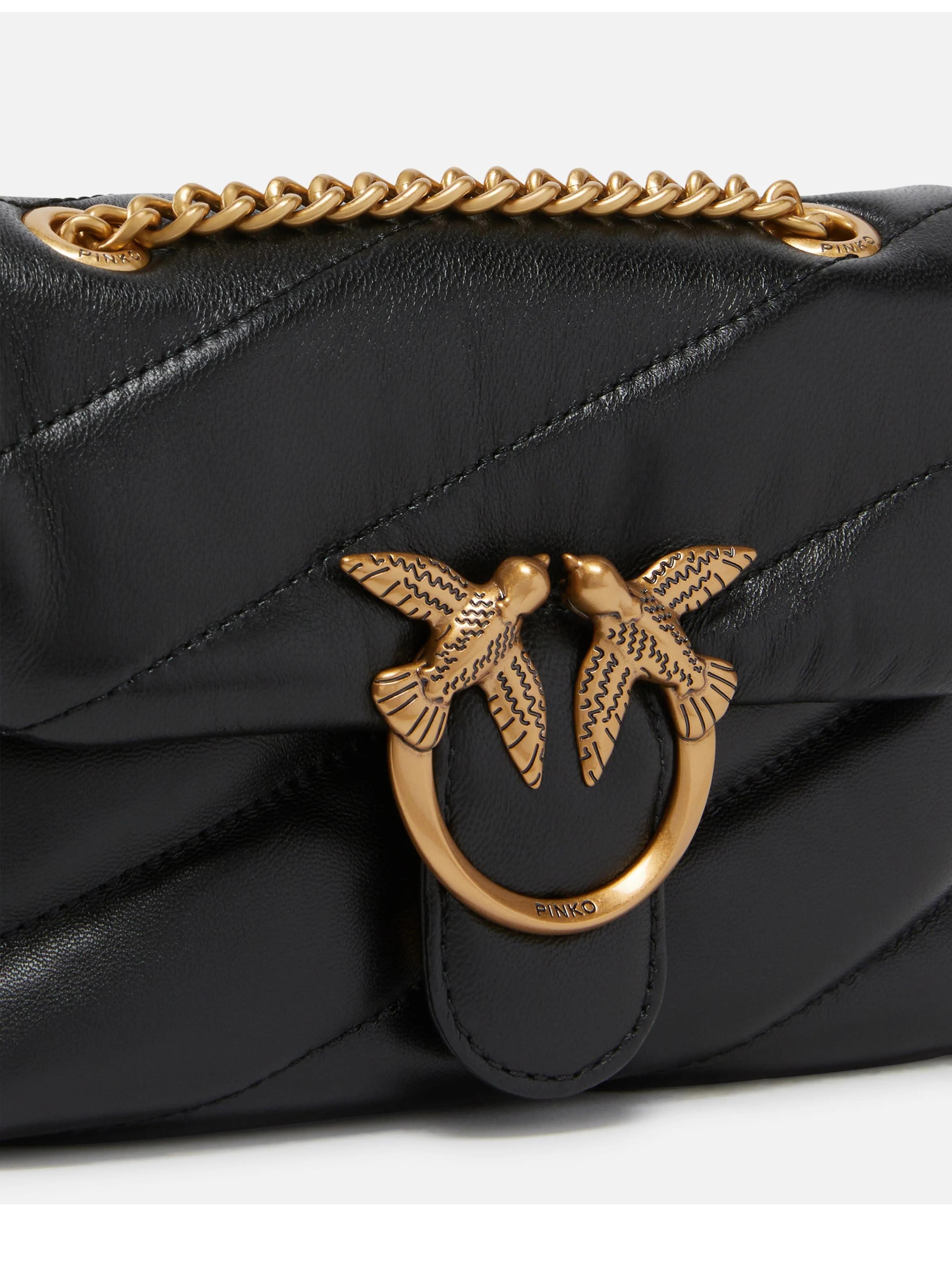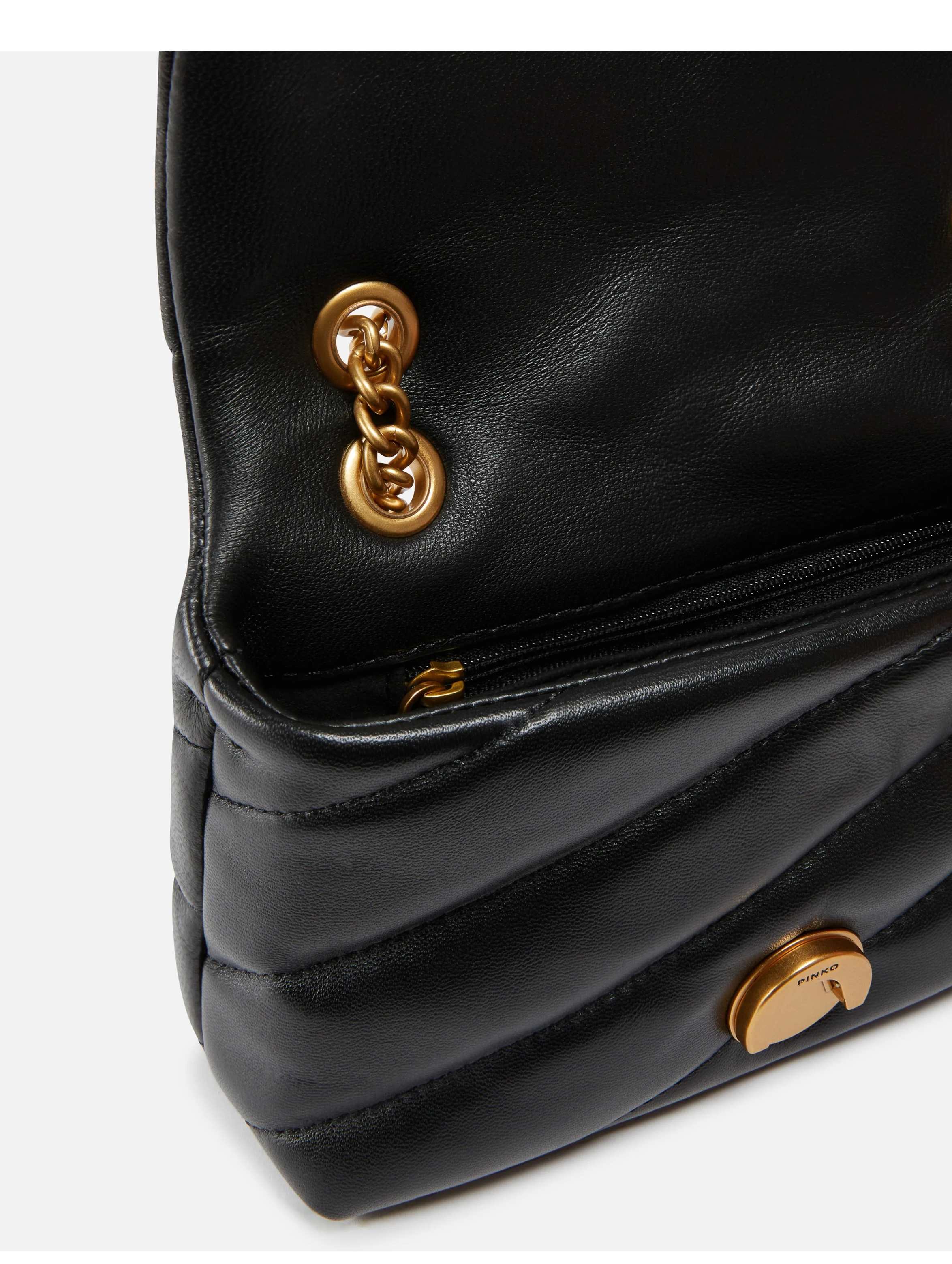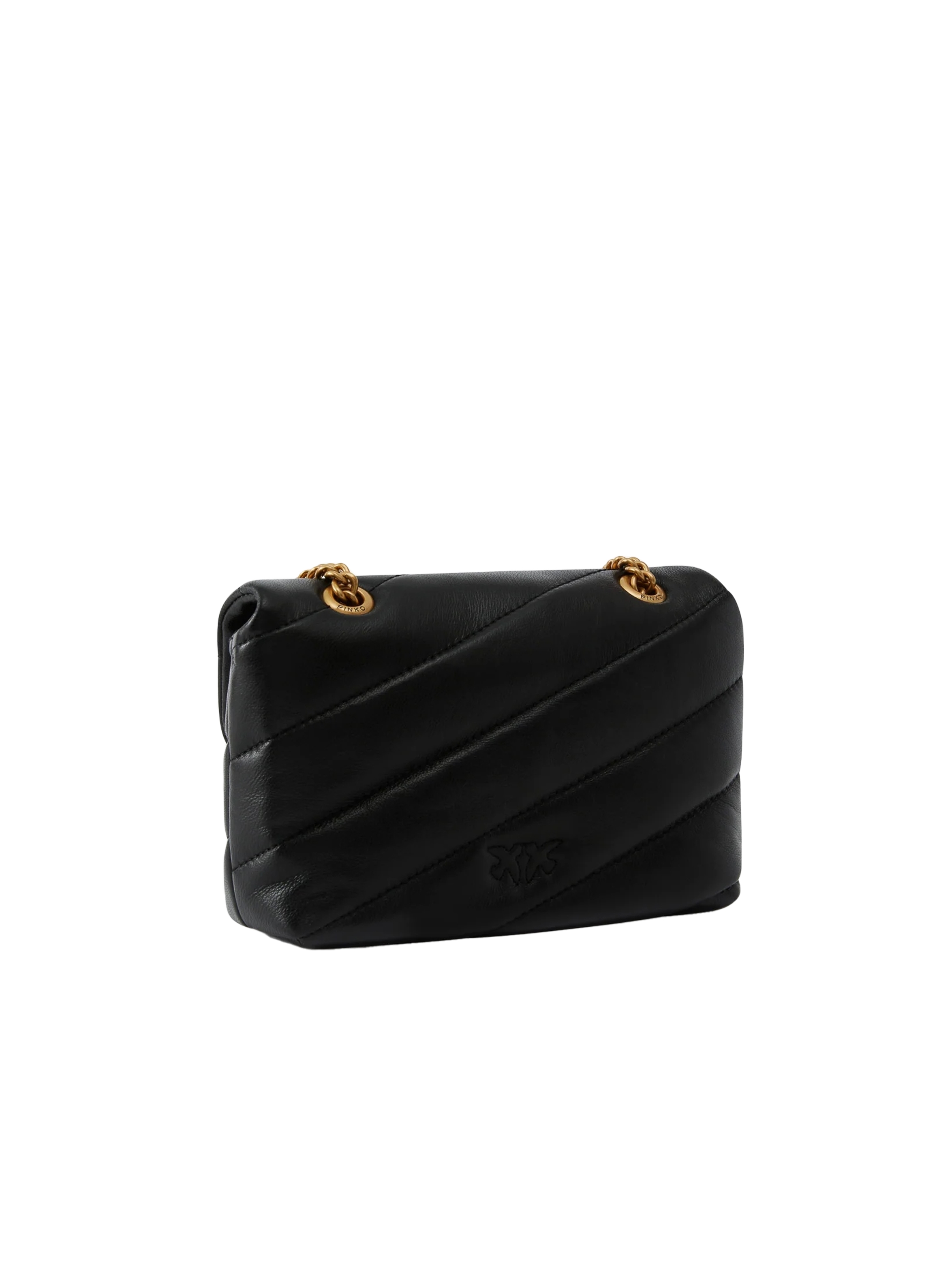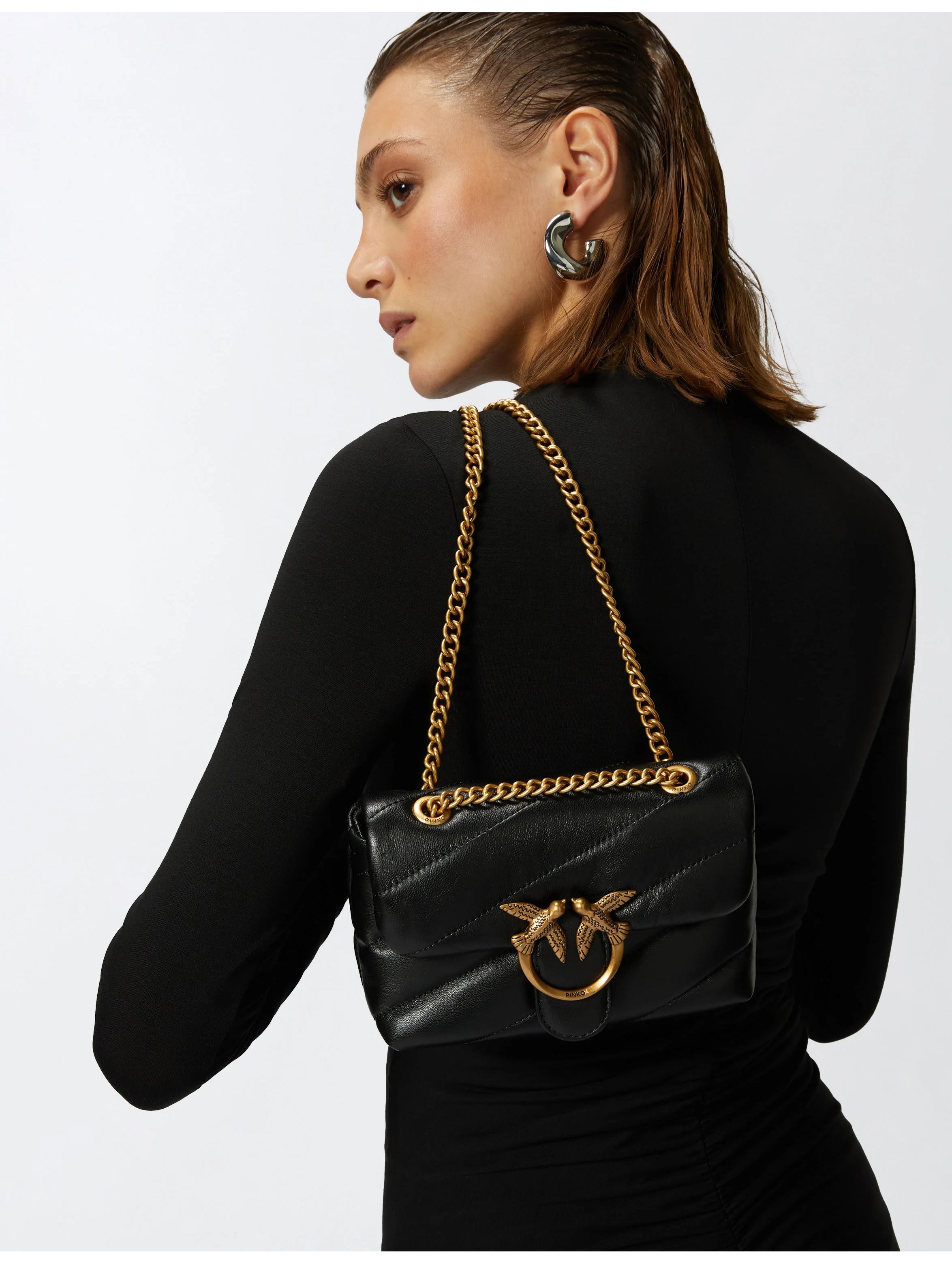 Borsa a tracolla realizzata in morbida nappa, con maxi trapuntatura obliqua, con interno foderato, tasca a parete chiusa con zip, tracolla in catena con pratico spallaccio e completata da una chiusura con patta impreziosita dall'iconica fibbia in metallo Love Birds Diamond Cut in metallo. Per look fashion e chic. PINKO