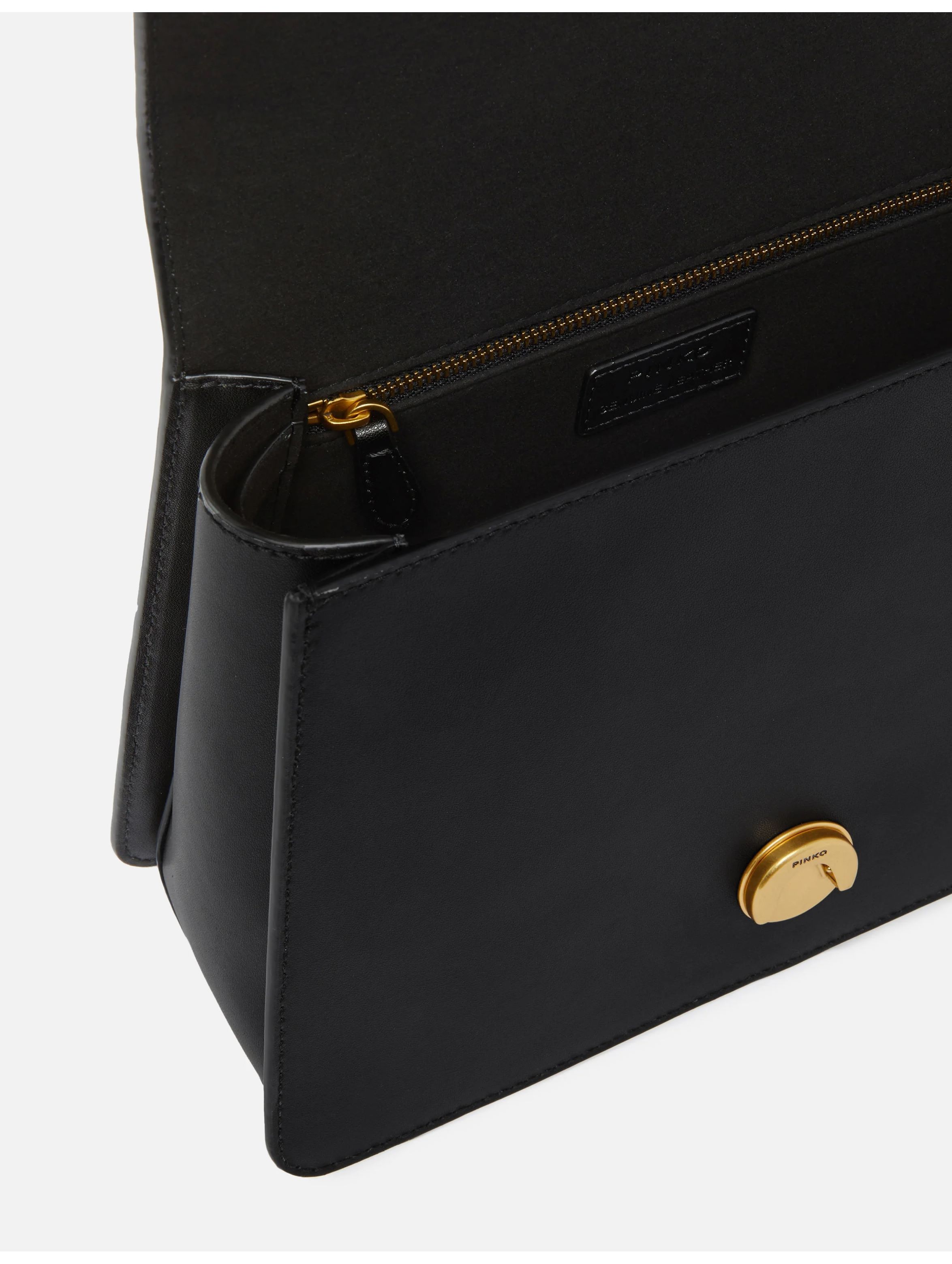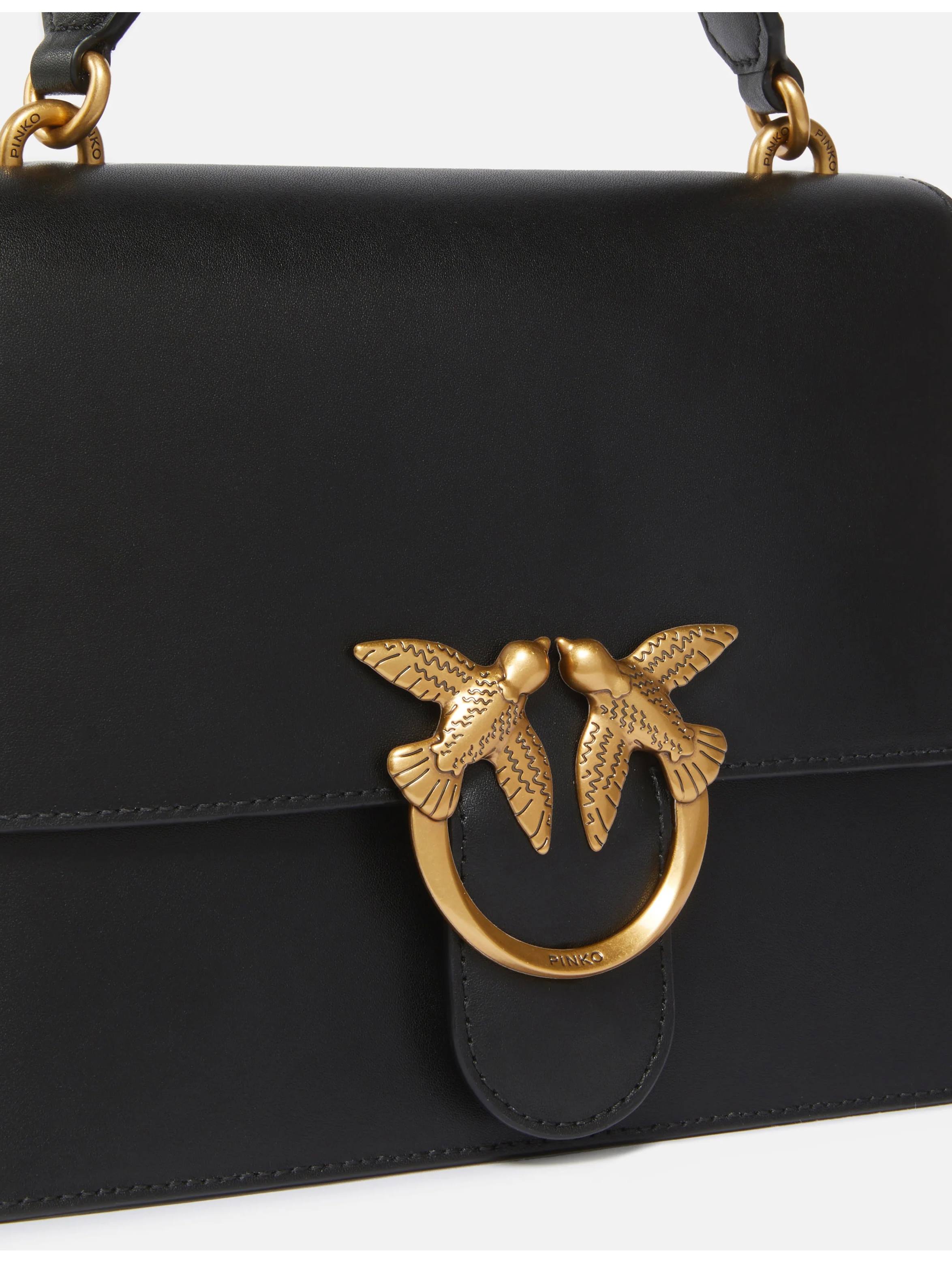 Borsa a mano realizzata in morbida pelle mano seta, con interno foderato, tasca interna con zip, manicotto in pelle, tracolla removibile e regolabile in pelle e completata da una chiusura con patta impreziosita dall'iconica fibbia in metallo Love Birds Diamond Cut. Per look raffinati e chic. PINKO