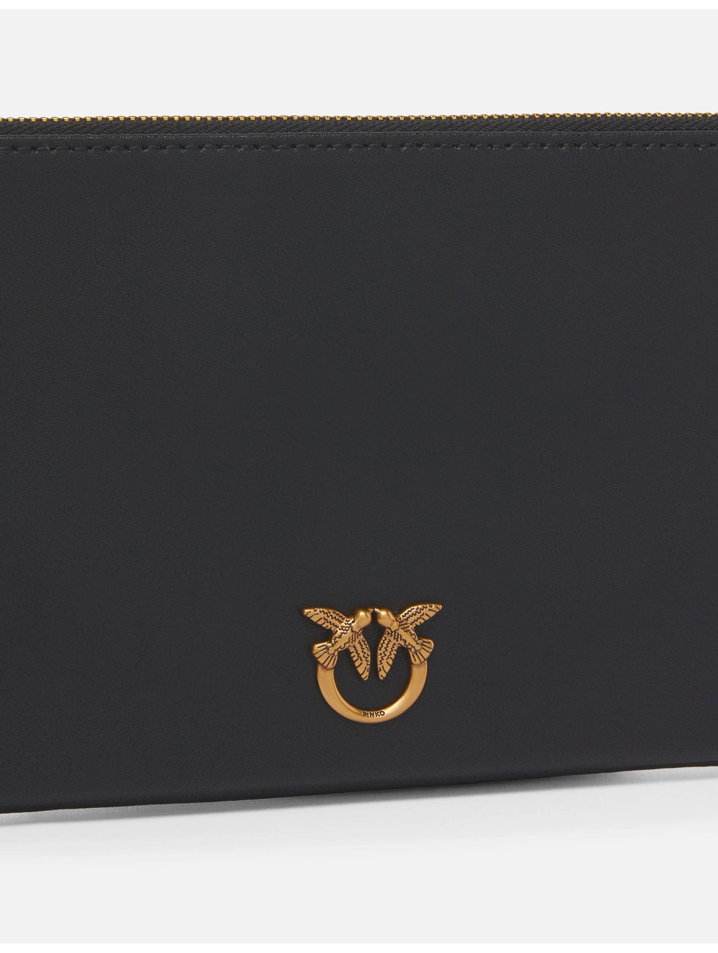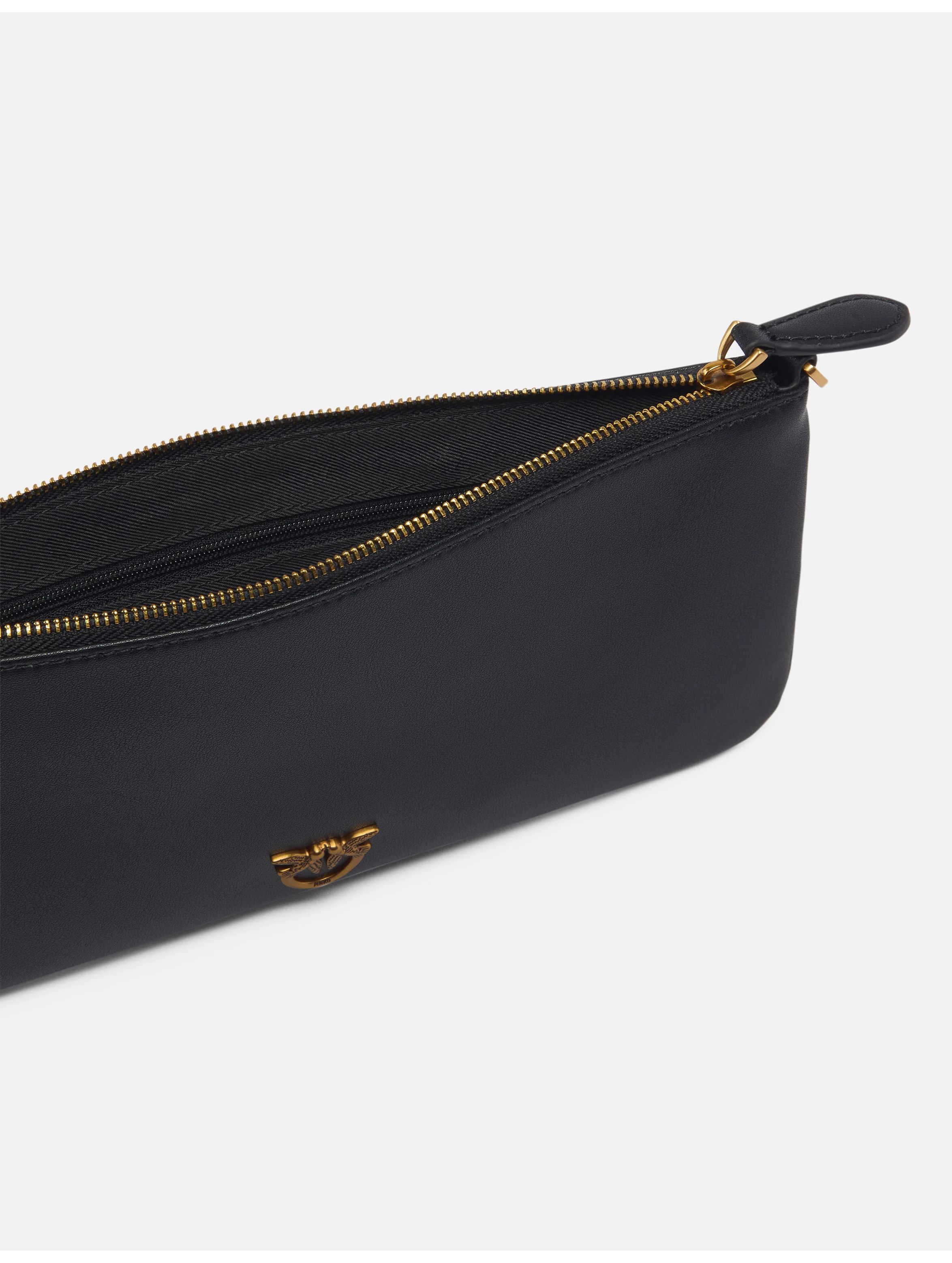 Borsa a tracolla flat realizzata in morbida pelle mano seta, dalla linea allungata, con interno foderato, tasca interna con zip, tracolla a catena sottile removibile e personalizzata dalla placchetta con logo Love Birds Diamond Cut in galvanica. Per look essenziali e trendy. PINKO