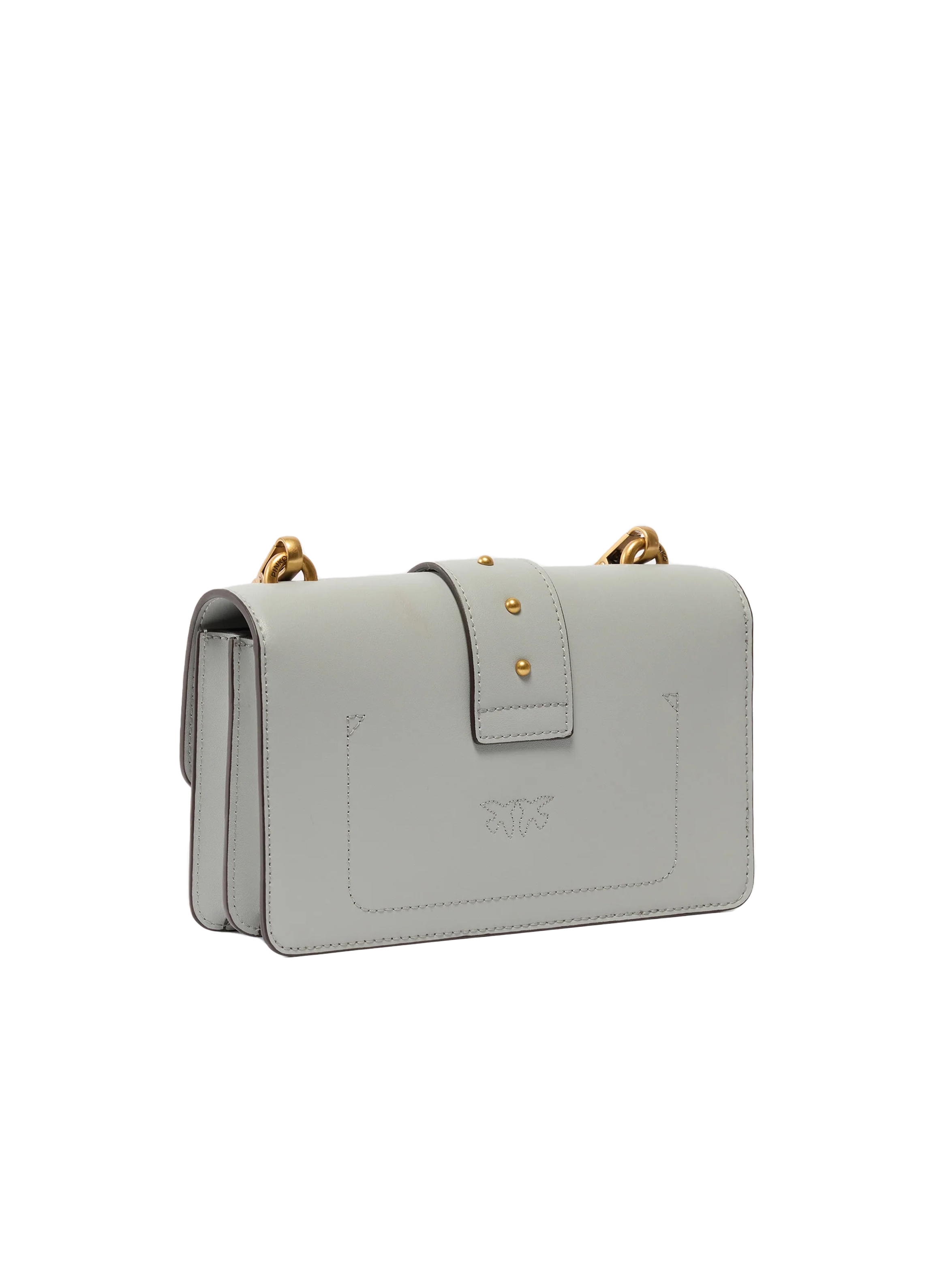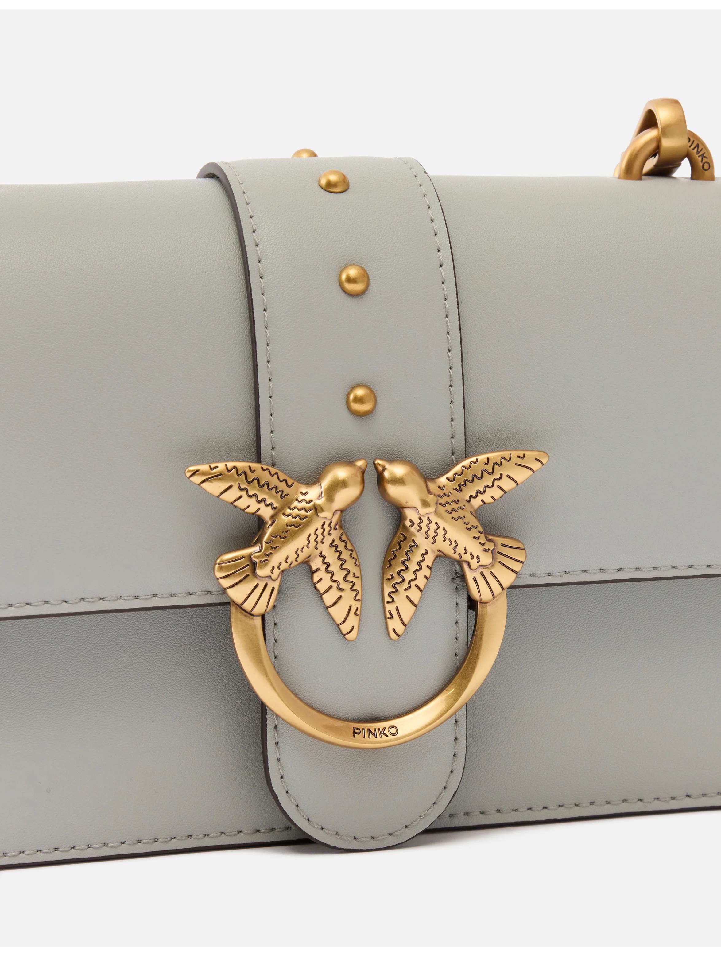 Borsa a tracolla piccola, realizzata in morbida pelle mano seta, con interno foderato, tramezza con zip, tracolla regolabile e removibile in catena con spallaccio in pelle, chiusura con patta e bottone magnetico impreziosita da piccole borchie e dall'iconica fibbia in metallo Love Birds Diamond Cut. Per look trendy e chic. PINKO