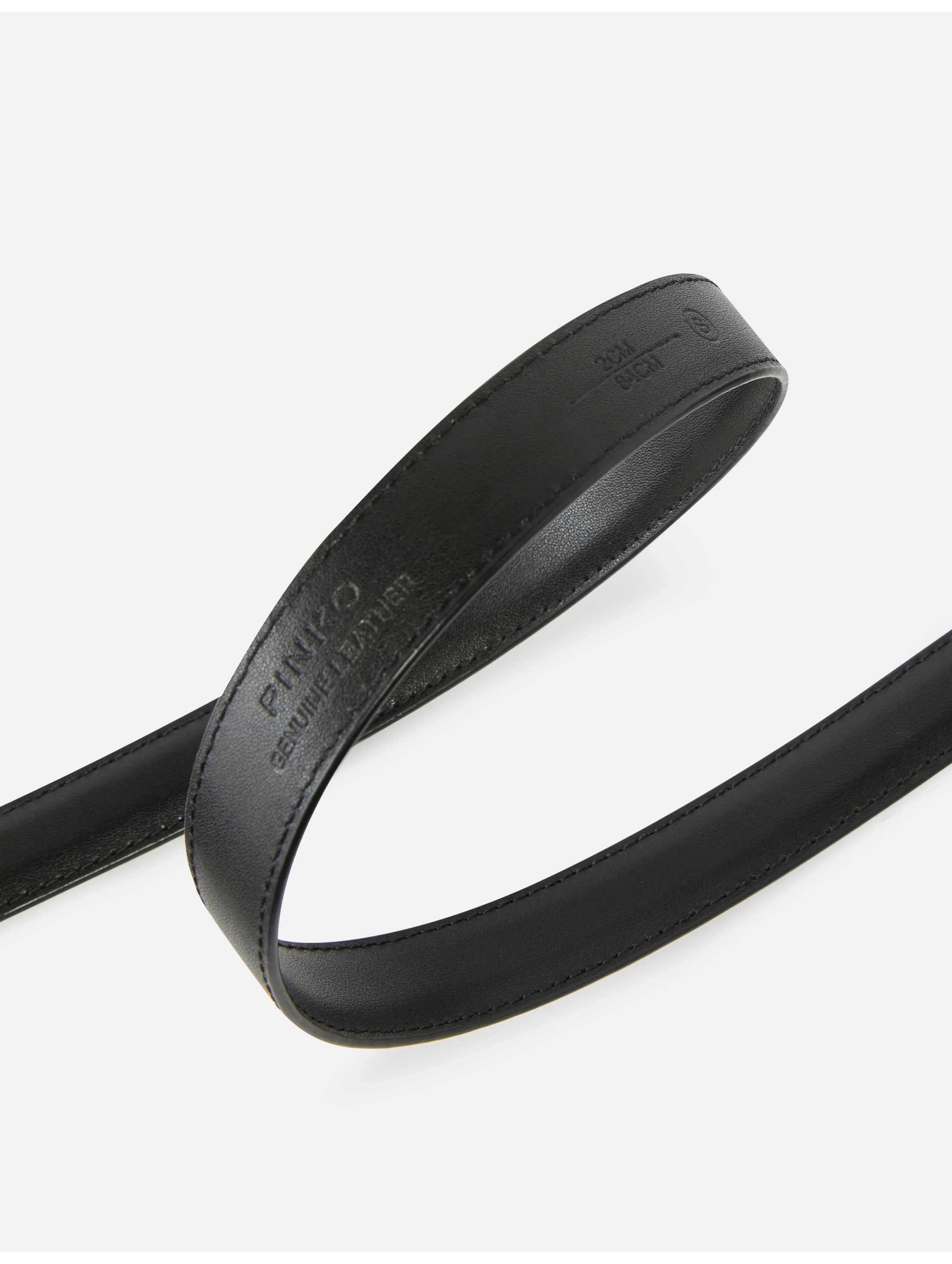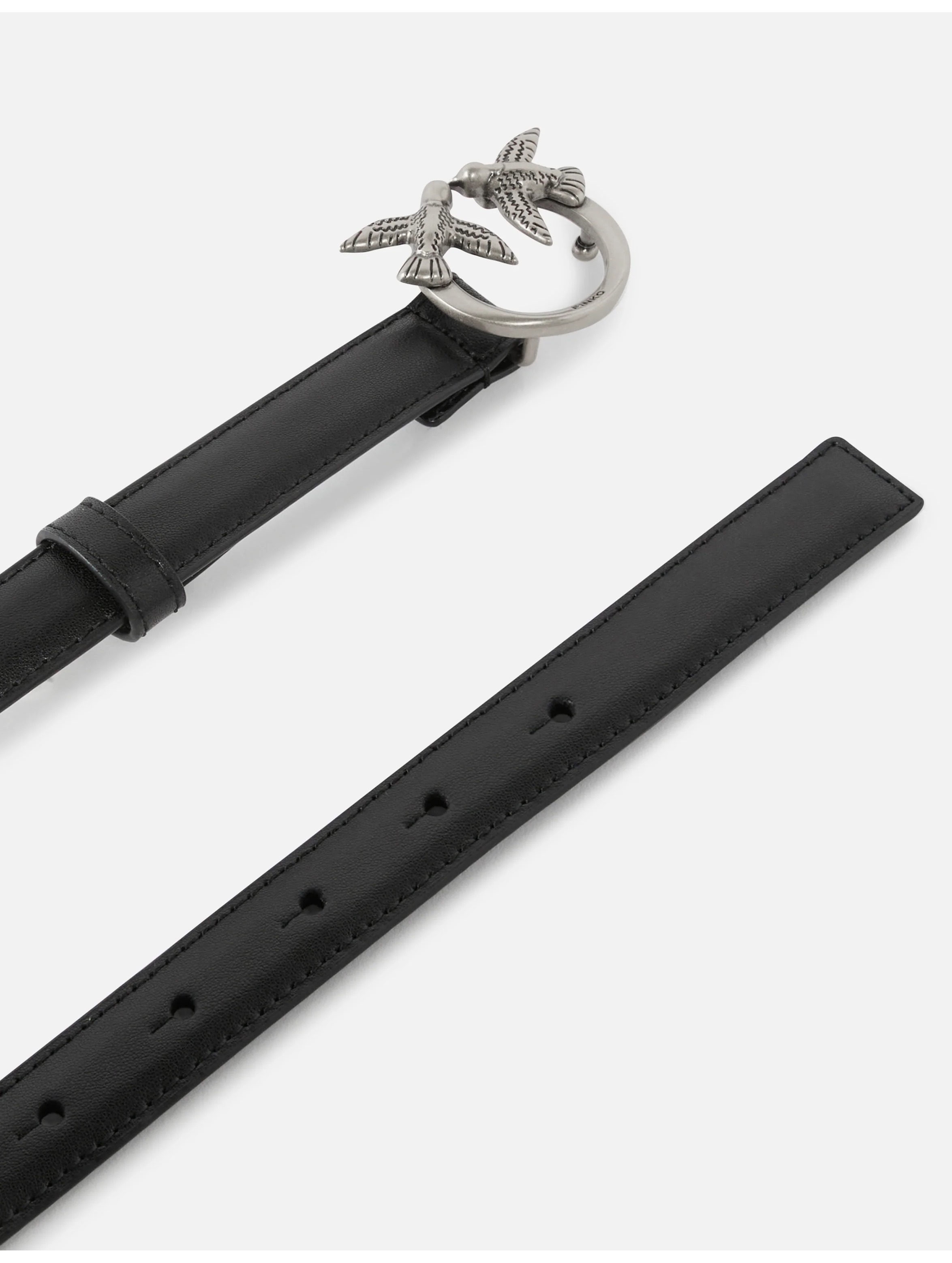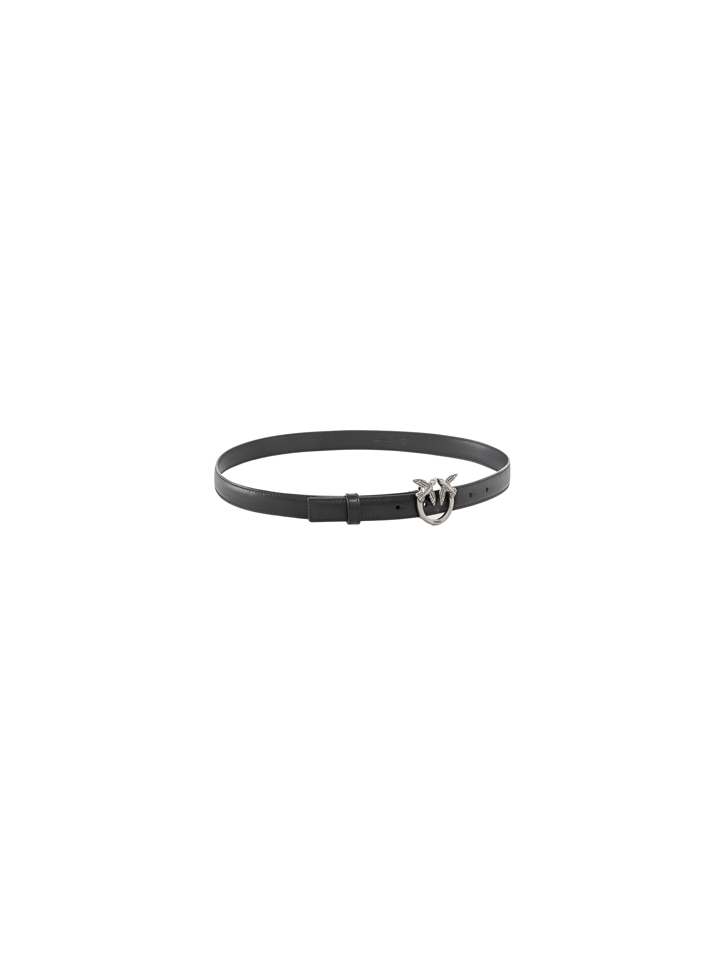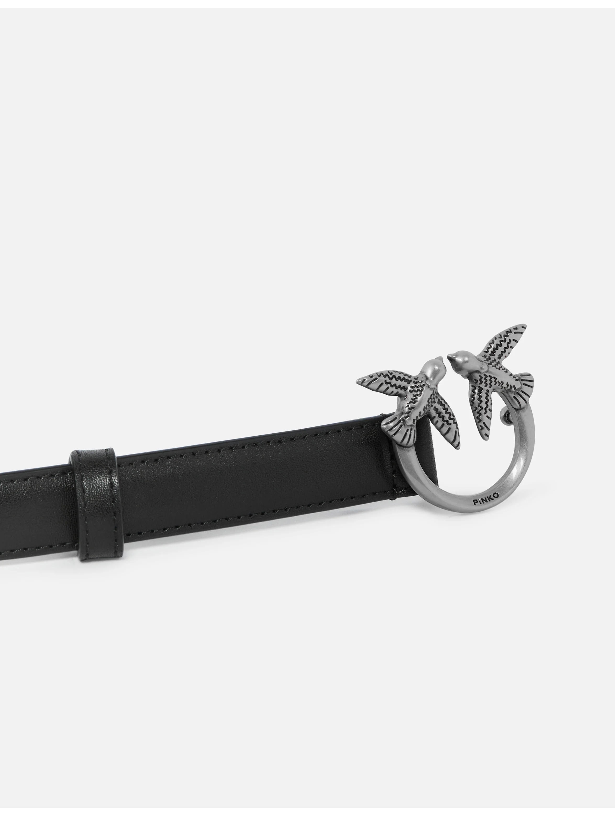 Cintura sottile realizzata in morbida pelle, lavorazione mano seta, con passante e iconica fibbia Love Bird Diamond Cut in metallo. Per look iconici e fashion. PINKO