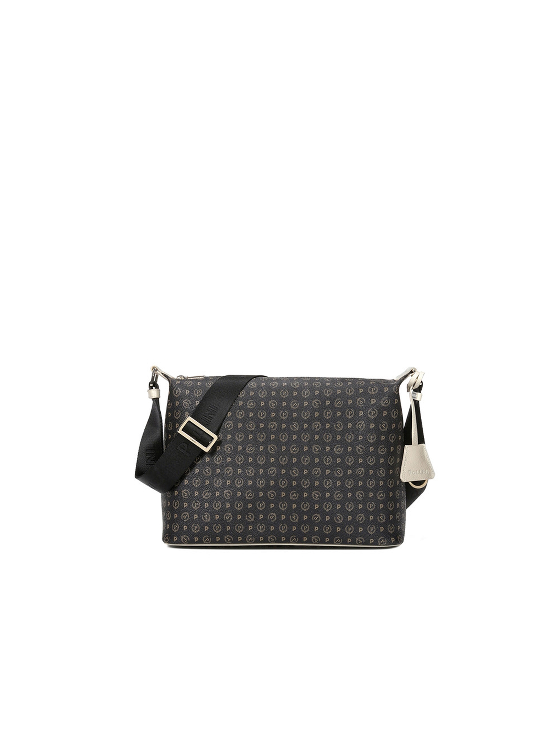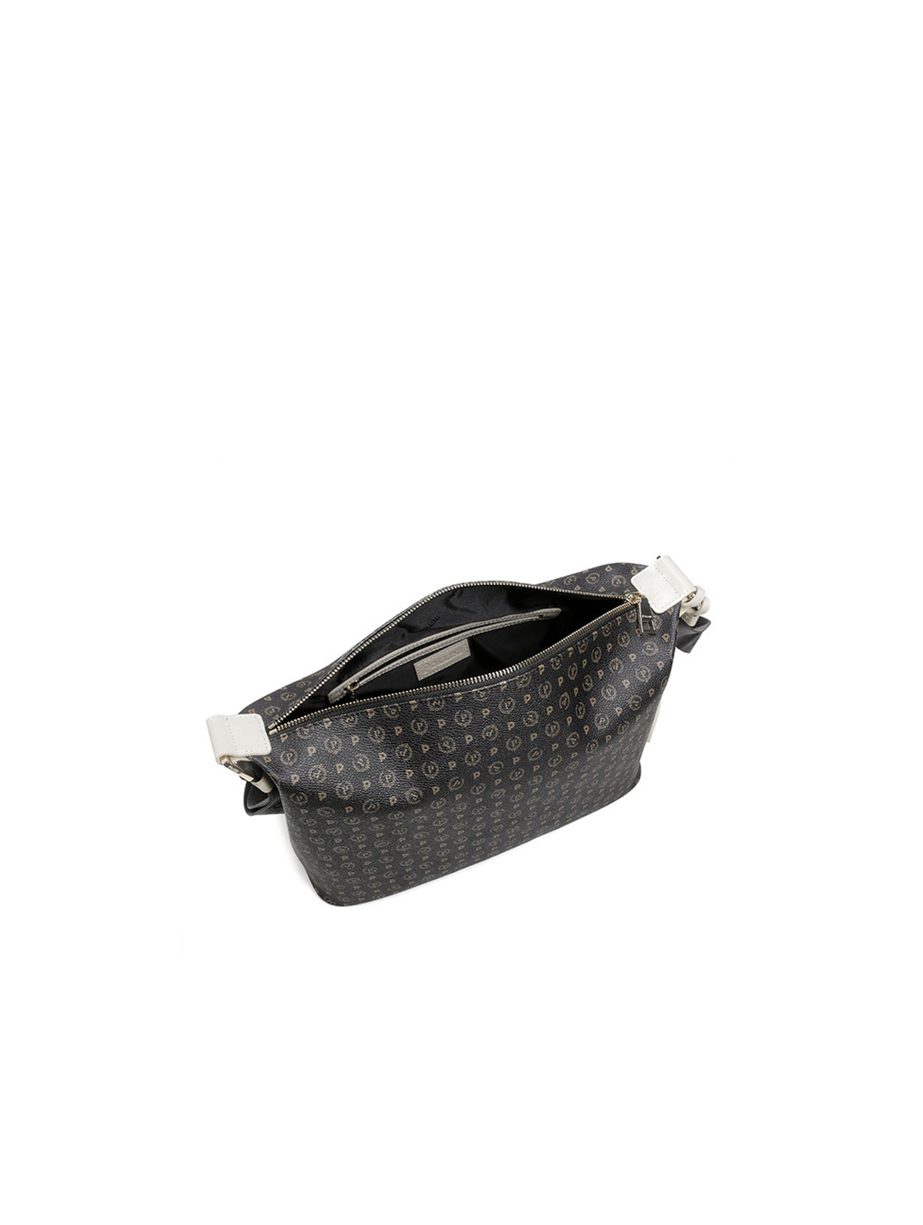 Borsa hobo a tracolla, con l'iconico monogramma stampato all over, con tracolla regolabile in gros grain con logo jacquard, portachiavi clochette removibile, chiusura con zip in testa, interno foderato con tasche aperte e tasca con zip. Per un look elegante e senza tempo. POLLINI HERITAGE