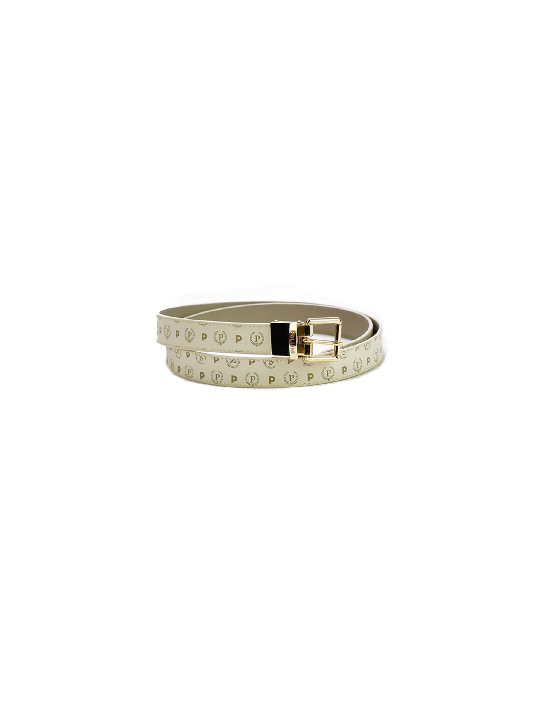 Cintura dal design reversibile, con inserti in pelle di vitello, un lato a tinta unita, un lato con logo Pollini Heritage all over, fibbia in metallo dorata con logo e con meccanismo girevole. Per un look classico e fashion. POLLINI HERITAGE