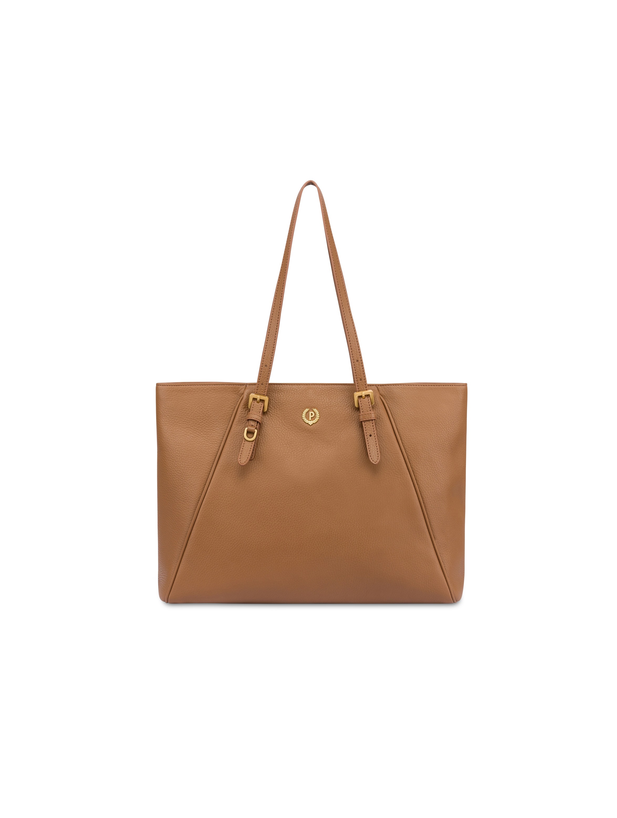 Borsa modello shopper realizzata in pelle di vitello, dalla silhouette ampia, con lunghi manici doppi che garantiscono comfort e versatilità, chiusura con zip, cuciture tono su tono e logo "P Alloro" in galvanica gold sul davanti. Per un look raffinato e chic. POLLINI SILVER