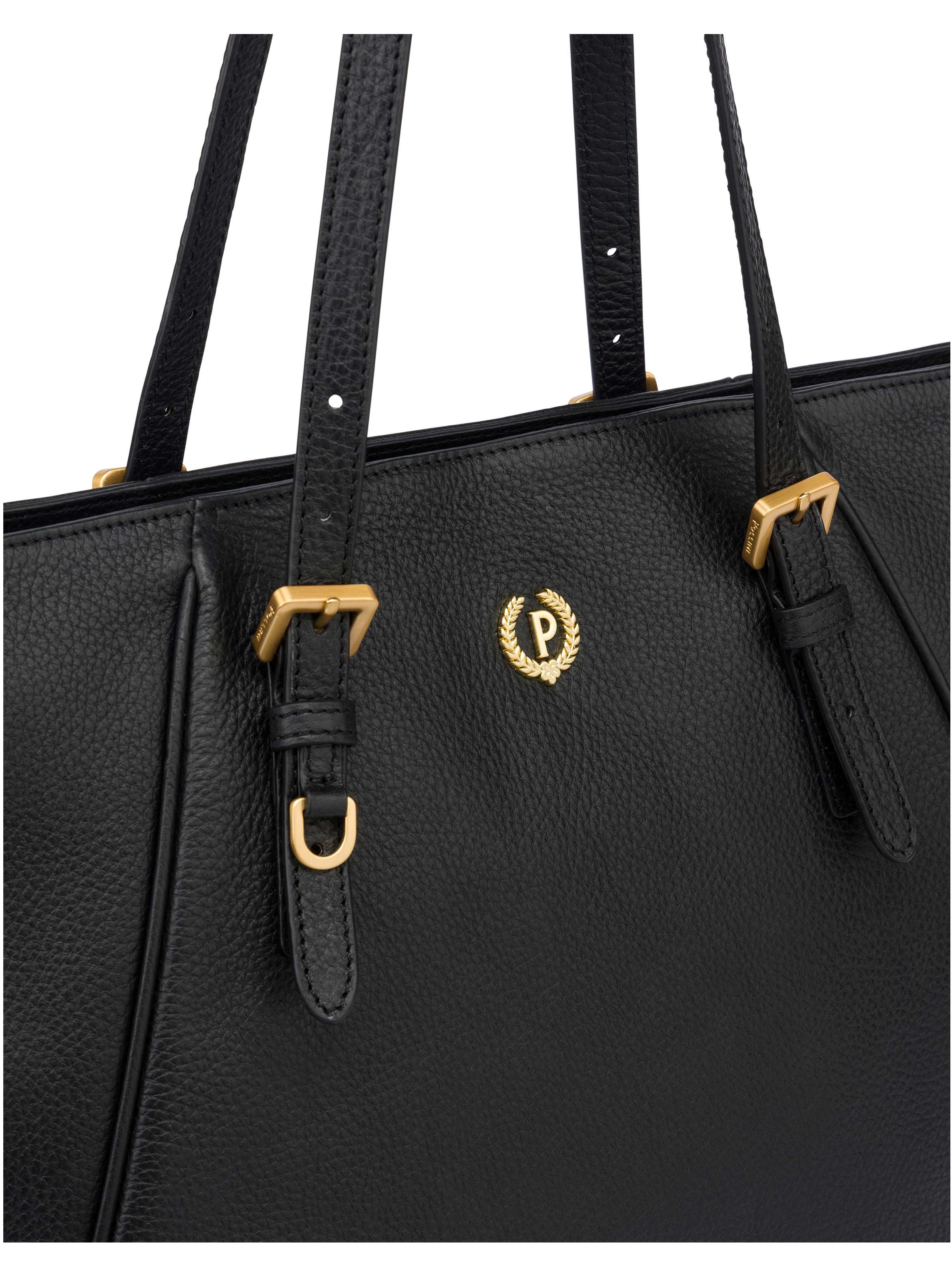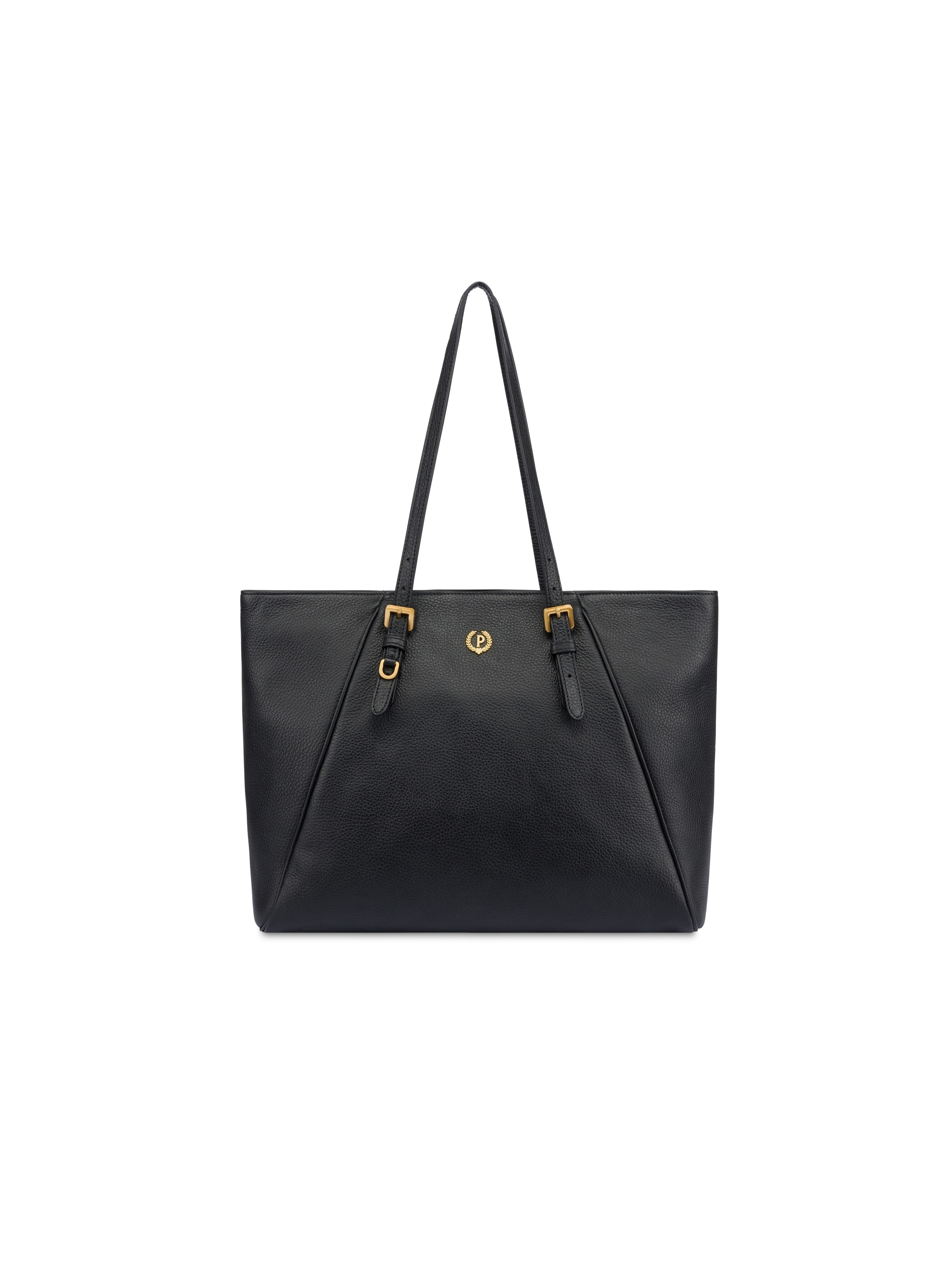 Borsa modello shopper realizzata in pelle di vitello, dalla silhouette ampia, con lunghi manici doppi che garantiscono comfort e versatilità, chiusura con zip, cuciture tono su tono e logo "P Alloro" in galvanica gold sul davanti. Per un look raffinato e chic. POLLINI SILVER