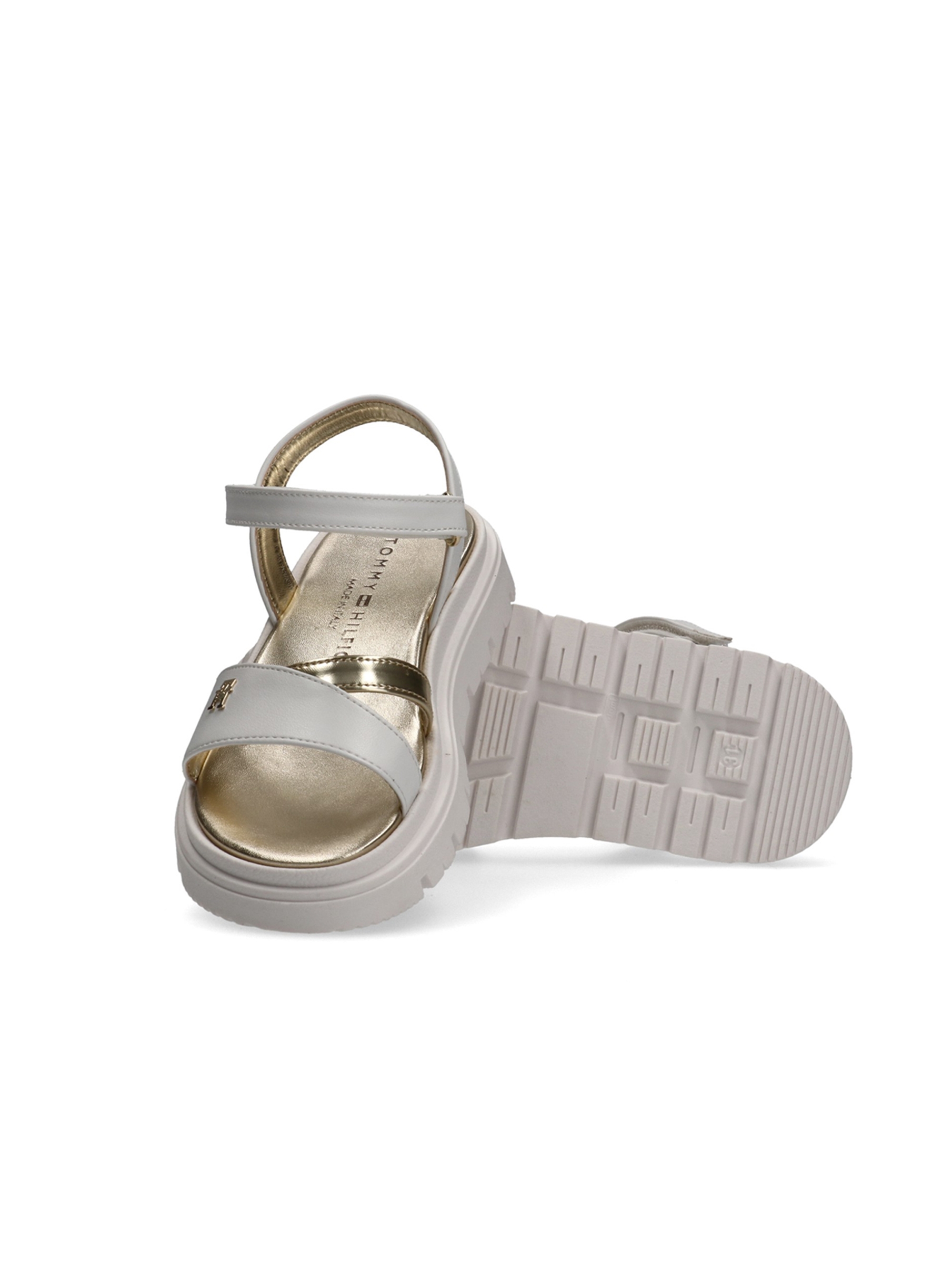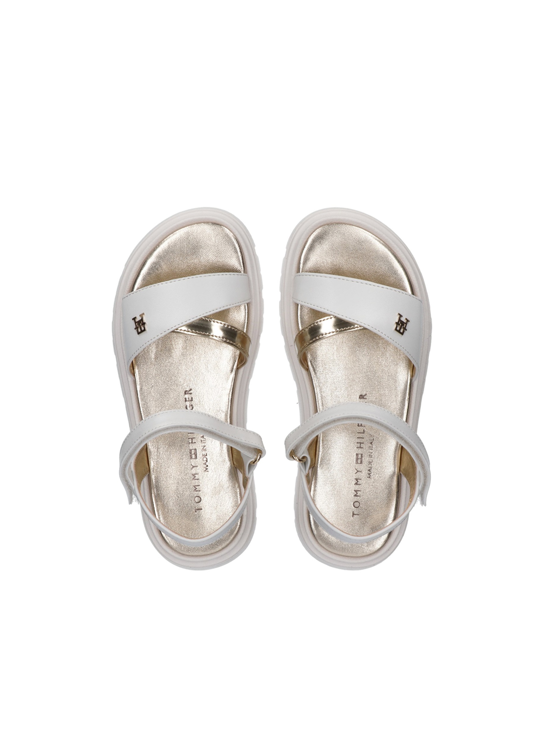 Sandalo con fascia e cinturino lucido incrociati sul davanti, chiusura con cinturino alla caviglia regolabile con velcro, sottopiede morbido e confortevole, battistrada dentellato e logo TH metallico sul davanti. Per un look fashion e chic. TOMMY HILFIGER