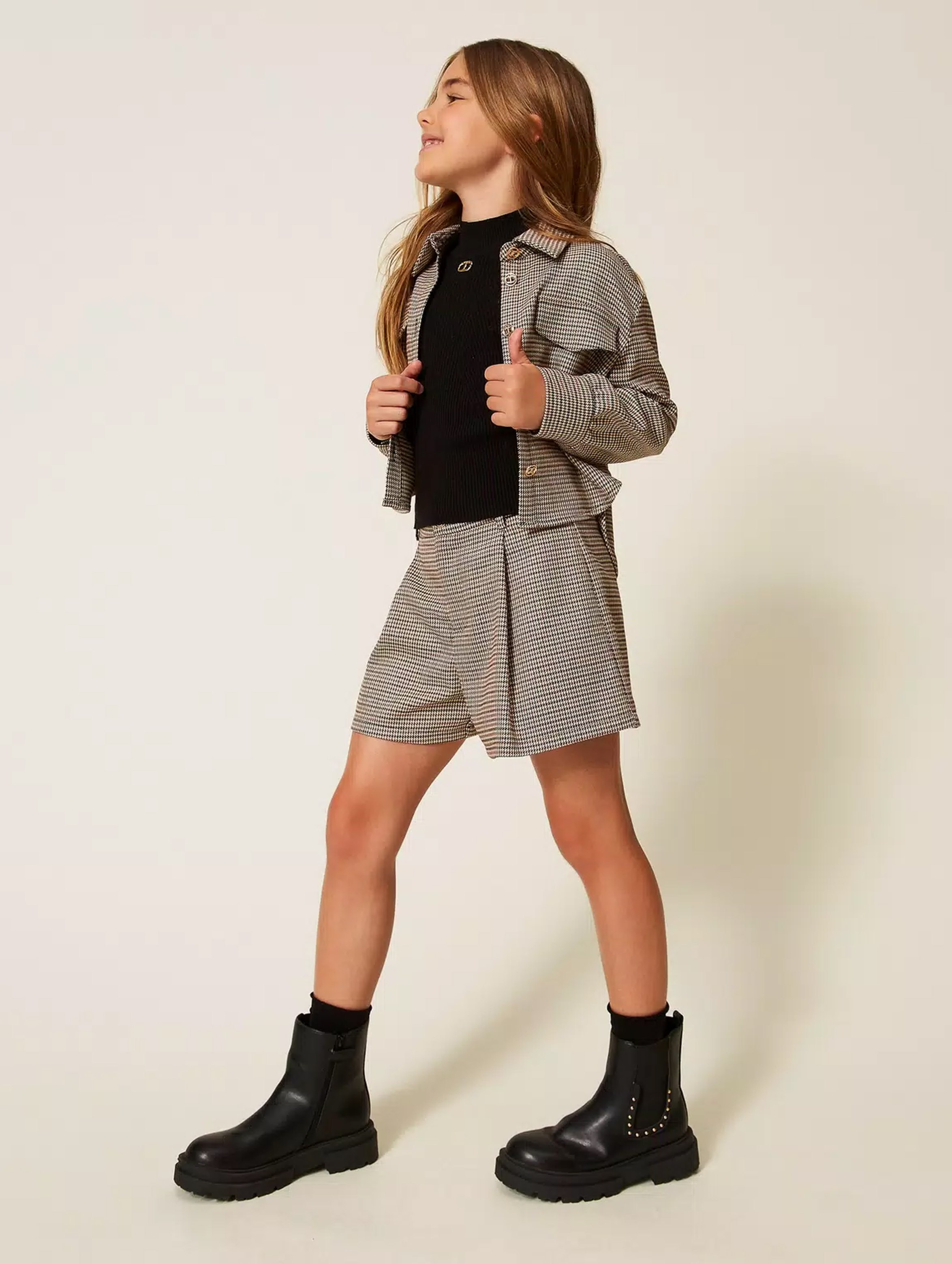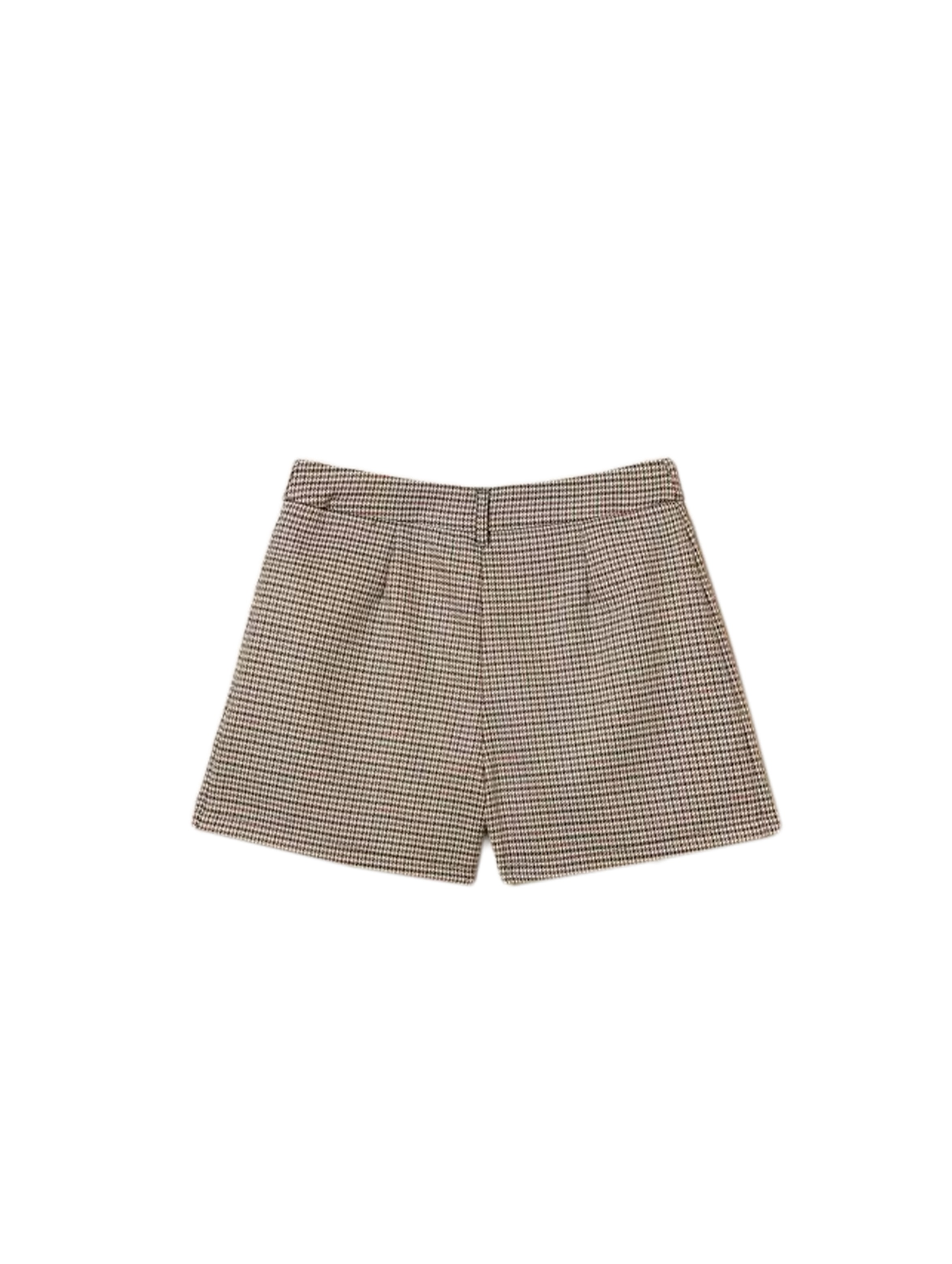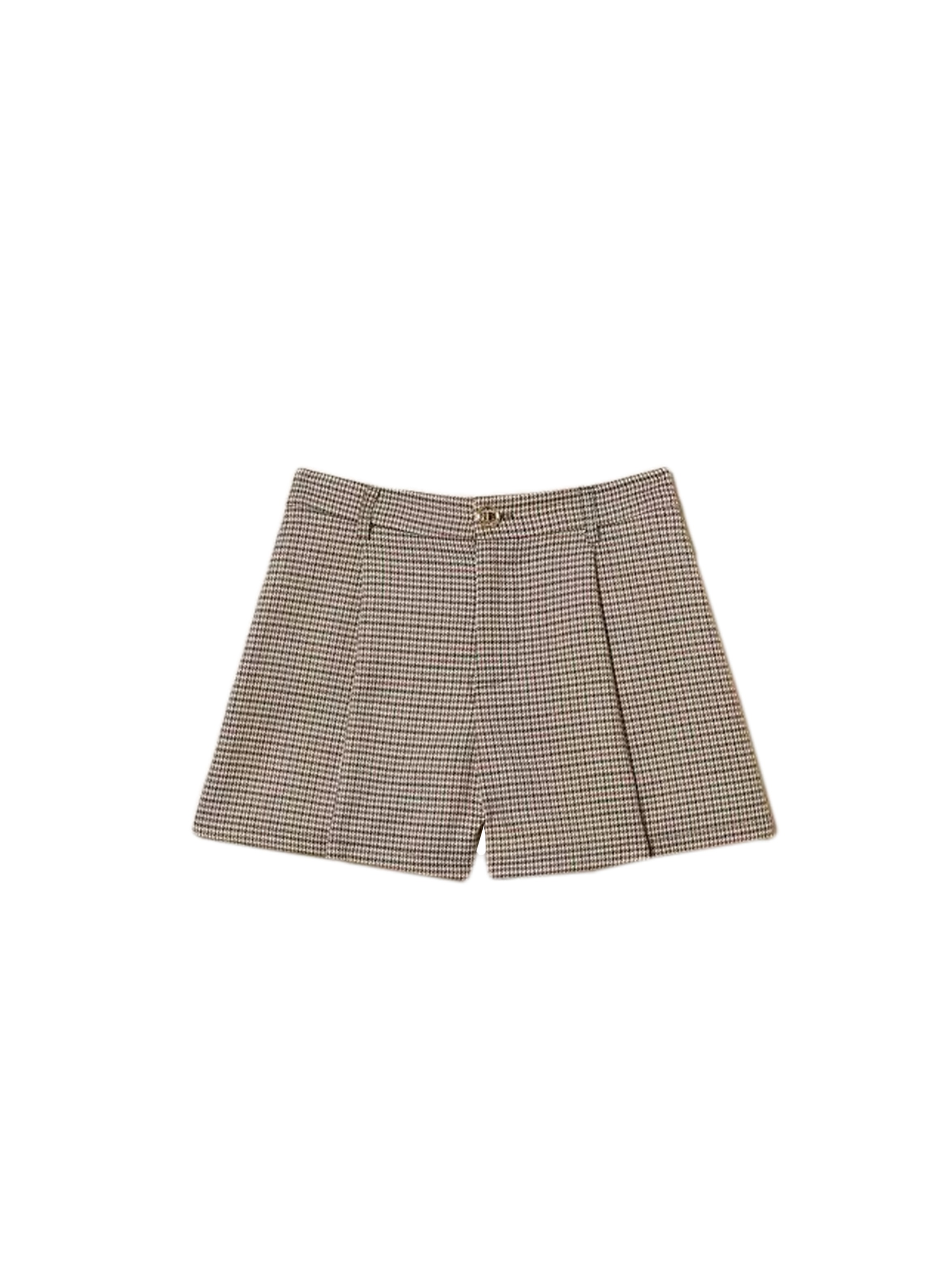 Shorts dalla linea dritta, in tessuto tinto filo pied-de-poule in toni naturali, con chiusura con zip e bottone logato e pieghe davanti. Per un look trendy e chic. TWINSET
