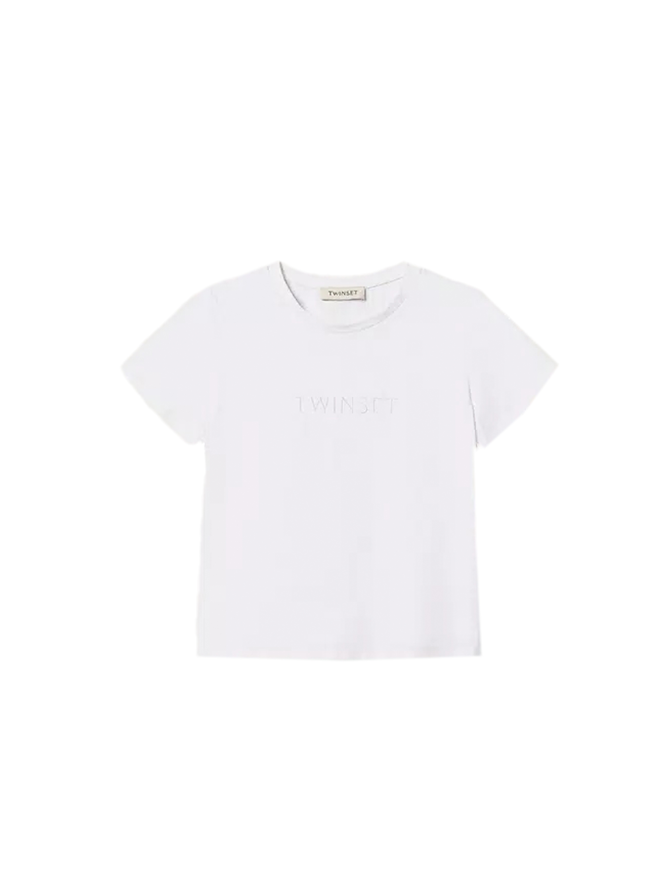 T-shirt a maniche corte in jersey di cotone stretch, con scollo rotondo, dalla vestibilità regular e con ricamo logo in tono davanti. Per un look basic e casual. TWINSET