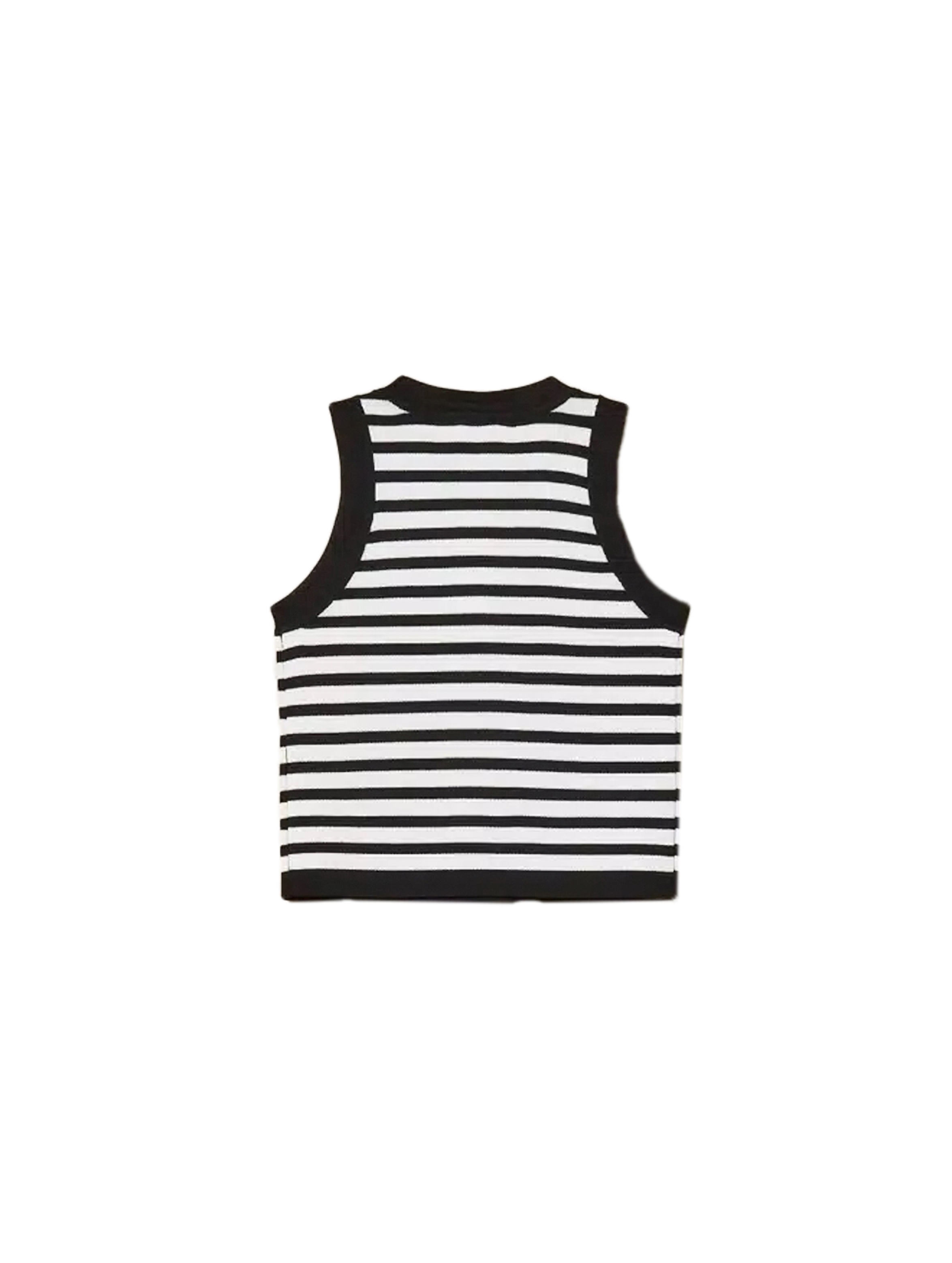 Top in maglia di viscosa rasata, dalla vestibilità fitted, con scollo rotondo, giromanica, dal design a righe e con bottoni logati decorativi in metallo sul giromanica. Per un look fashion e chic. TWINSET