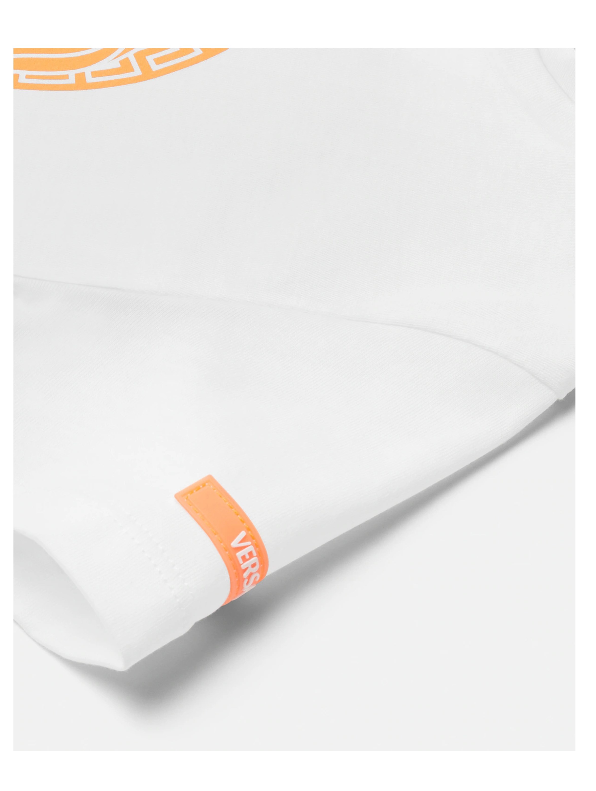 T-shirt a maniche corte realizzata in jersey di cotone, con scollo rotondo, a tinta unita e con una vivace grafica Medusa sul davanti e un'etichetta Versace Logo in gomma sulla manica. Per un look trendy e fashion. VERSACE